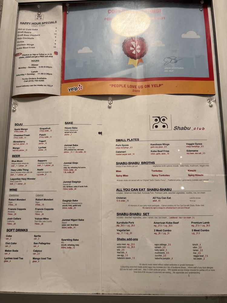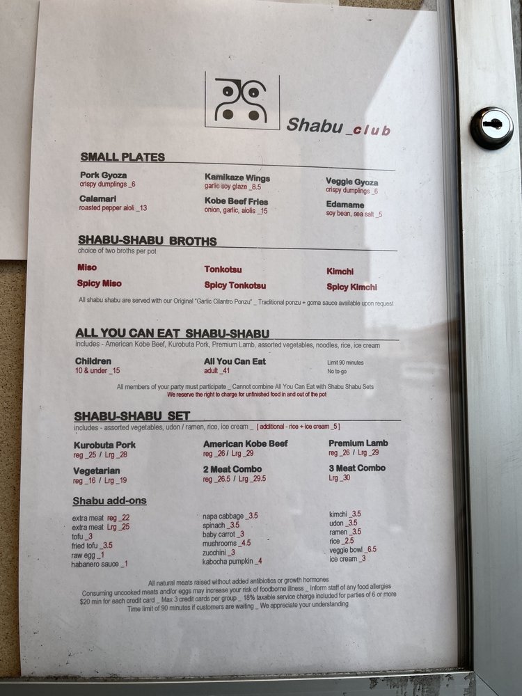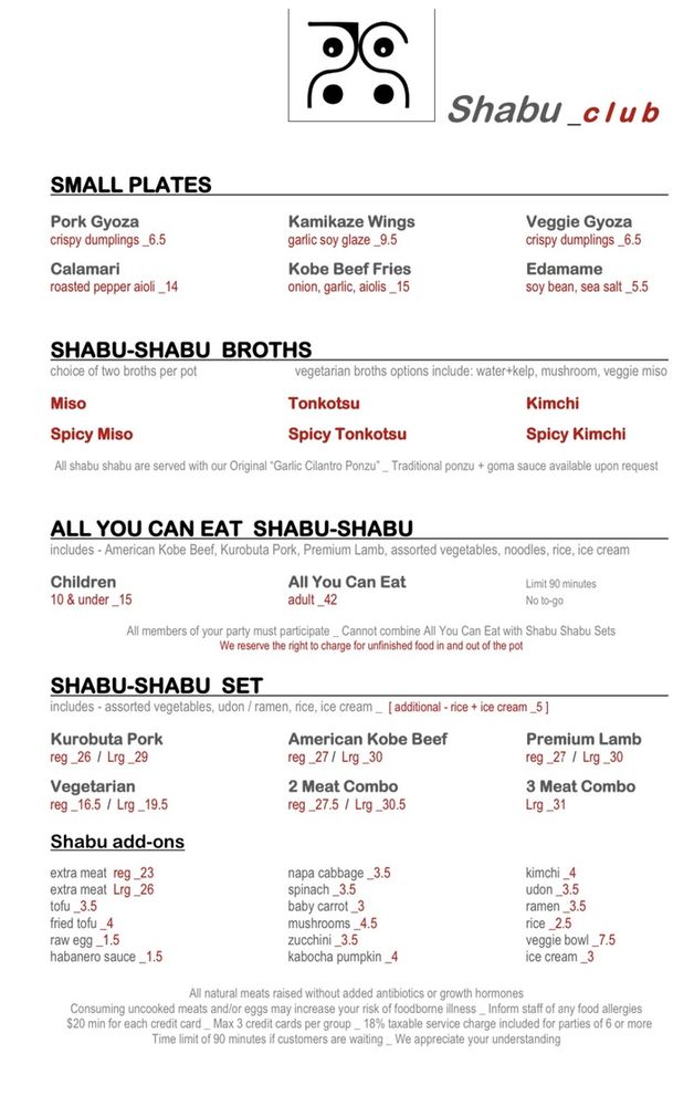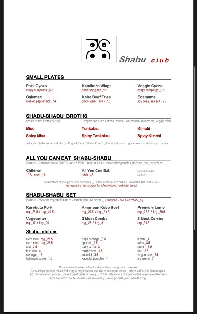 Shabu Club Menu